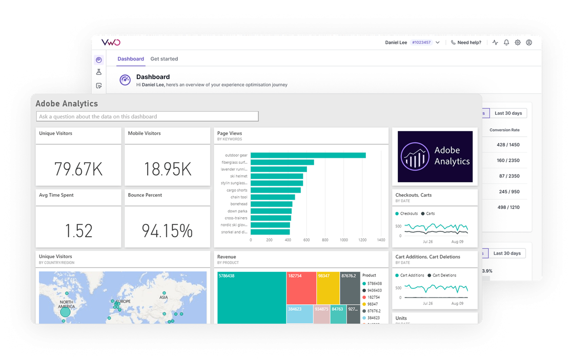Share VWO Campaign data with Adobe Analytics for consolidated reporting and deeper analysis of test impacts on key metrics.