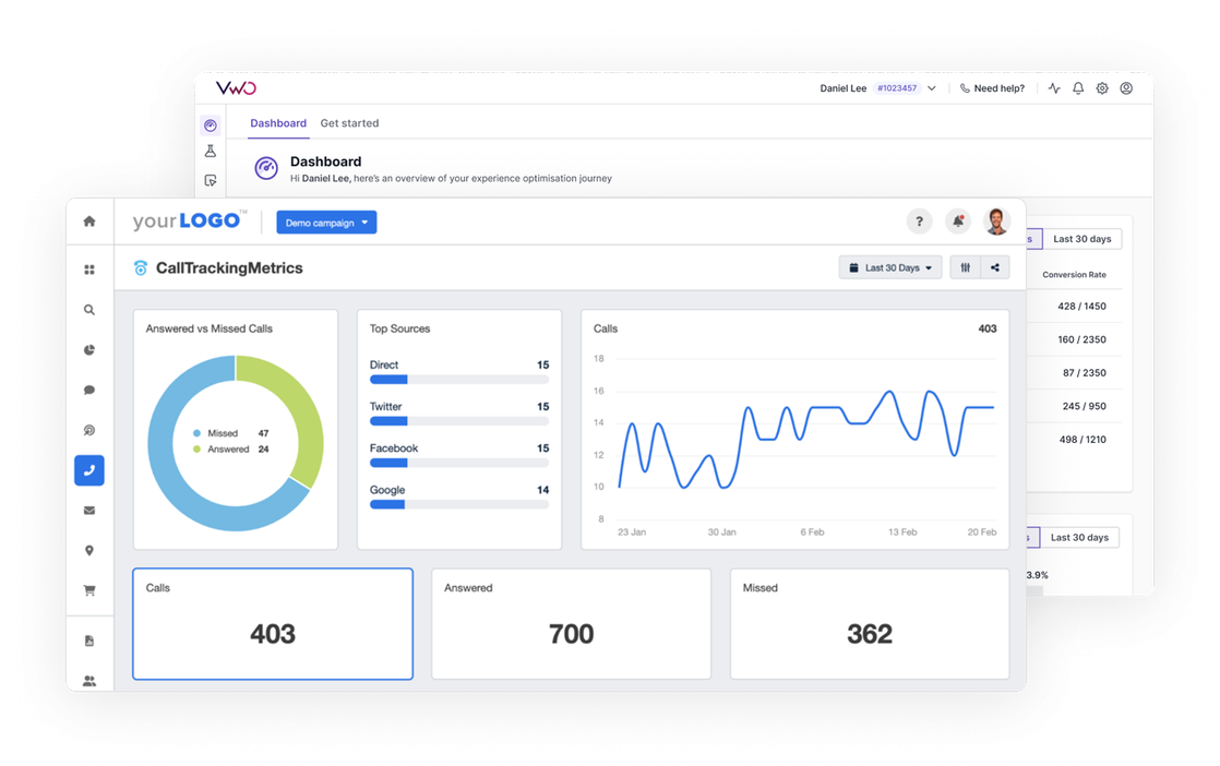 Identify which A/B test variation drives more calls and conversions by linking call data with your VWO campaign